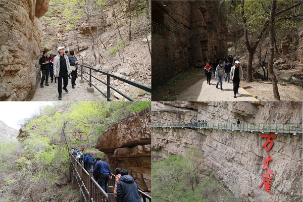 參觀活動結(jié)束后,大家開始游覽京東大峽谷,沿著崎嶇的山路,欣賞大峽谷鬼斧神工的自然景觀。漫步于美麗的龍門湖,看群峰倒映水中;依崖而建的人工棧道,猶如攀巖在懸崖峭壁上,大家身臨其境,感受當(dāng)年軍民抗日的艱難險境;天然形成的五龍?zhí)丢?dú)居特色,有的深不可測,有的靜若處子,有的湍瀉奔流,為大峽谷增添了靈氣。大家在曲折陡峭的山路中穿行,互相鼓勵,相互扶持,順利通過。一路游覽,一路暢談,一路體驗,大家感受到了自然風(fēng)光的美麗和今日生活的美好。